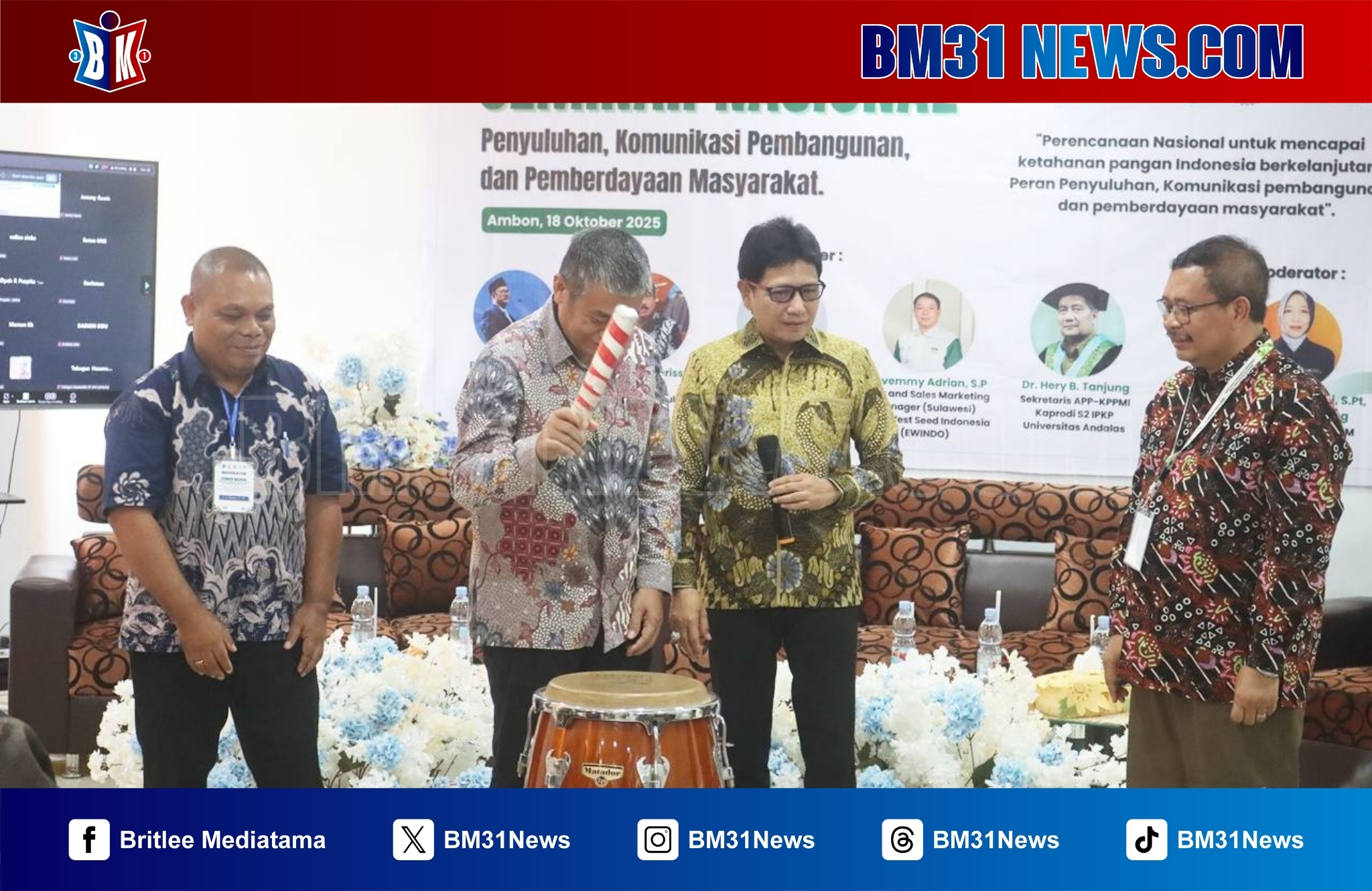 | Fakultas Pertanian Universitas Pattimura (Unpatti) menggelar Seminar Nasional Komunikasi Pembangunan dan Pemberdayaan Masyarakat bertema “Perencanaan Nasional untuk Mencapai Ketahanan Pangan Indonesia Berkelanjutan: Peran, Komunikasi Pembangunan dan Pemberdayaan Masyarakat”, Sabtu (18/10/2025) di Aula Lantai IV Gedung Laboratorium Terpadu Pendukung Blok Marsela, Ambon. Kegiatan ini bertujuan memperkuat kontribusi akademisi dan praktisi dalam membangun sistem pangan yang tangguh, mandiri, dan berkelanjutan di Indonesia.